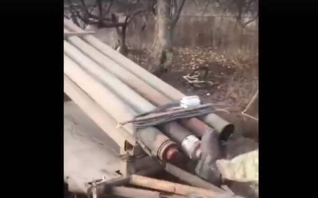 В сети опубликованы кадры, на которых запечатлены моменты заряжания и последующего применения боевиками киевского режима самодельной установки РСЗО. Кустарная установка представляет собой обычные водопроводные трубы, приваренные к одноосному автомобильному прицепу.Судя по всему, диаметр использованных боевиками труб не совсем совпадает с калибром реактивных боеприпасов, которые приходится в нарушение всех существующих правил техники безопасности пропихивать при помощи ударов ногами.