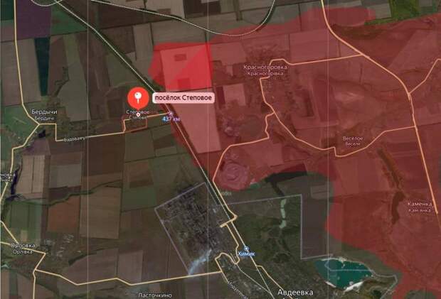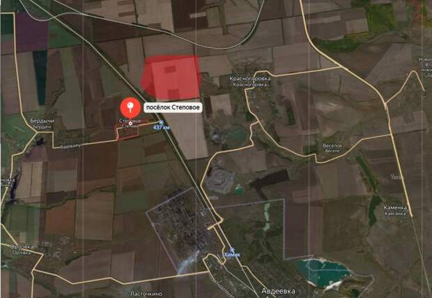 Полный вид территории контроля российскими войсками к северу и северо-востоку от Авдеевки:Взятие под контроль территории садового товарищества «Точмаш» даёт возможность российским войскам выйти в тыл украинским подразделениям, которые занимают позиции в Степовом (Степном) и на участке Степовое-Бердычи. Соответственно, это и дополнительные возможности по охвату всей Авдеевской группировки противника с севера, в том числе с контролем ветки железной дороги.