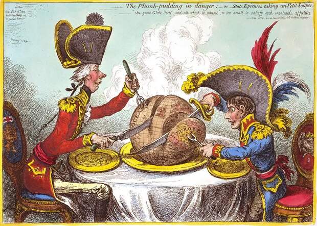 «Пудинг в опасности». Премьер-министр Питт (Англия) и Наполеон (Франция) делят мир. Карикатура Джеймса ГилреяПредысторияРазгромив Вторую антифранцузскую коалицию, Франция стала гегемоном континентальной Европы. Однако мир был коротким. Его мог удержать стратегический союз Парижа и Петербурга, Наполеона и Павла I.