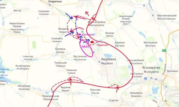 Подразделения российской армии продолжают давить в районе Авдеевки, противник предпринимает попытки сбить наступление и отбросить наших назад. На данный момент продвижение вперед немного застопорилось, но и у противника ничего не получается. После второго удара сразу с северного и южного флангов Авдеевки, нашим удалось до конца зачистить террикон, продвинуться к Бердычам и закрепиться на новых позициях.