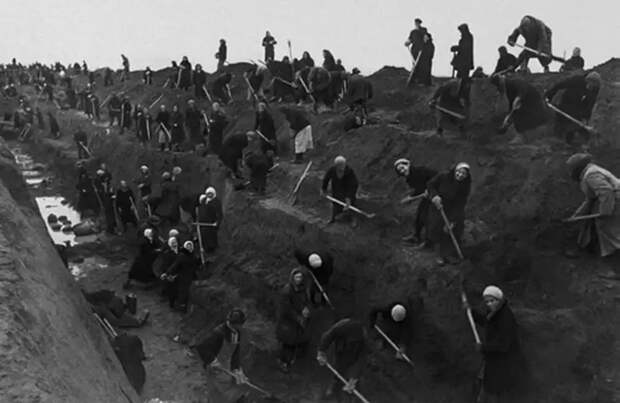 Работницы московской «Трехгорной мануфактуры» роют ров. Им ткать нужно, а не лопатой махать.В фондах РГБ сохранилась небольшая книжка, отпечатанная на сквернейшем и трудночитаемом ротапринте в 1943 году. Название – «Временный справочник показателей расхода рабочей силы и материалов для объекта оборонного строительства.
