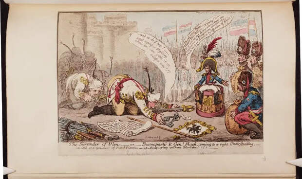 Сдача Ульма: Бонапарт и генерал Мак приходят к взаимопониманию. Британская политическая карикатура. Автор Джеймс ГилрейПланы сторонКак уже ранее отмечалось, Бонапарт планировал войну в пределах Англии, мечтал о «взятии Лондона и Английского банка», но ему пришлось вести войну с «наймитами» Англии — Австрией и Россией, и закончить войну не в Лондоне, а близ Вены (Русская кровь за спасение «туманного Альбиона»).