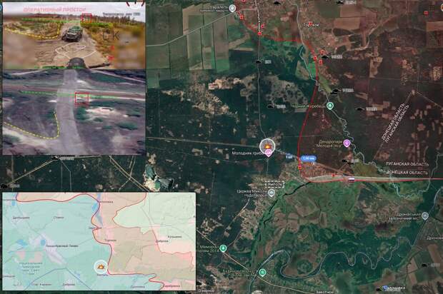 ВС РФ обстреляли и сожгли бронеавтомобиль ВСУ на позиции в Кременских лесах севернее Ямполя.